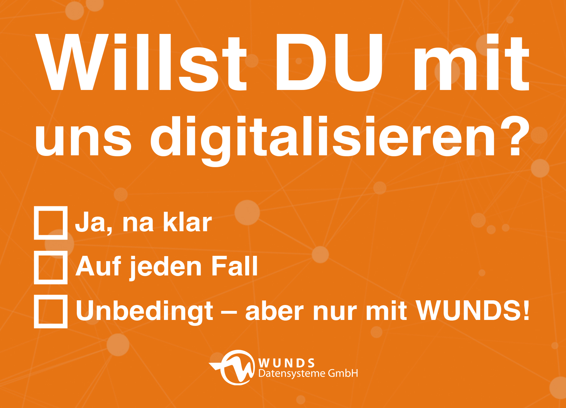 - WUNDS kennenlernen – Digitalisierung erleben: Ein kompakter Einblick in unsere Anwendungen, Portallösungen & Services – von Zeiterfassung über Vertragsmanagement bis KundenInfo & Artikelimport.