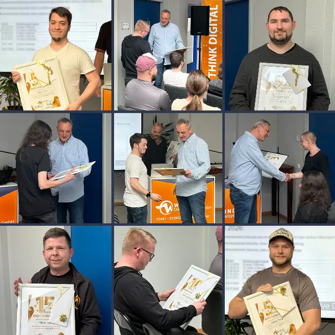 Wir freuen uns, dass ihr Teil unseres Teams seid, und blicken mit großer Wertschätzung auf die gemeinsame Zeit – auf viele weitere Jahre Zusammenarbeit!