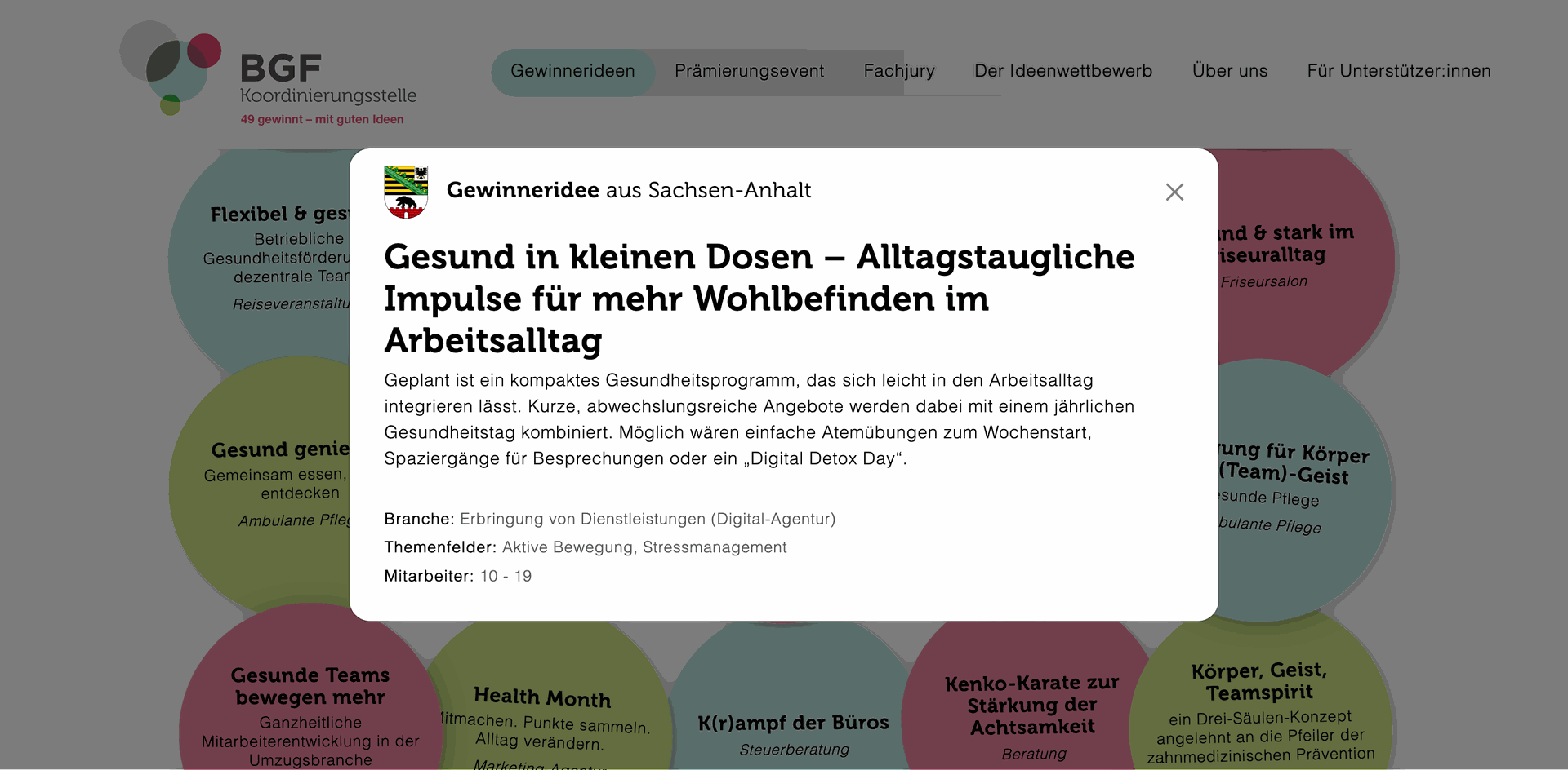 Mit unserer Idee "Gesund in kleinen Dosen – Alltagstaugliche Impulse für mehr Wohlbefinden im Arbeitsalltag", haben wir den ersten Platz erreicht und freuen uns schon jetzt auf die Umsetzung.